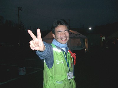 新潟会場で運転手の柄沢くんが、セッティング中、